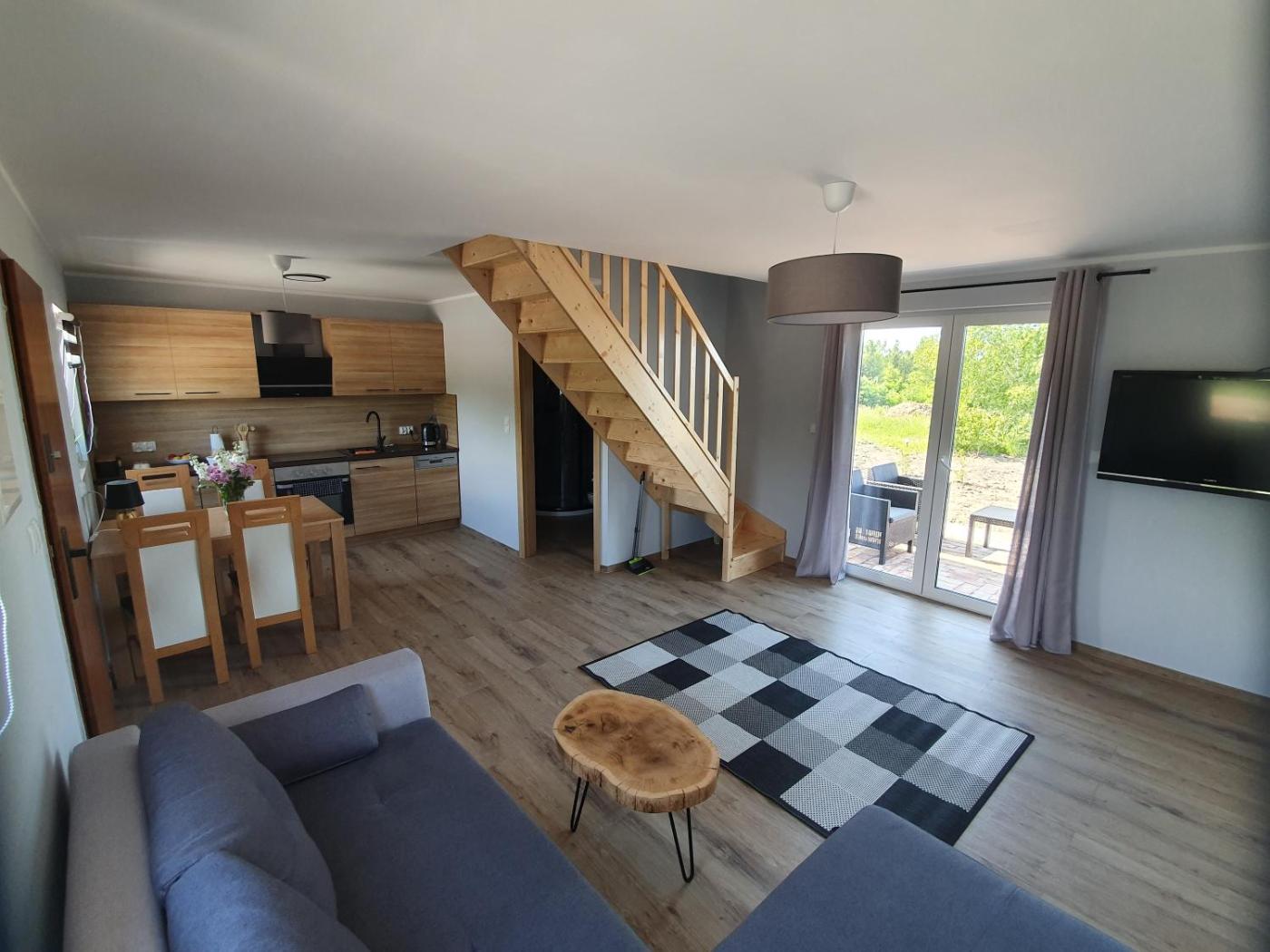 Dom z 2 sypialniami. Featuring a private entrance, this air-conditioned holiday home comprises 1 living room, 2 separate bedrooms and 1 bathroom with a shower. The well-equipped kitchenette features a stovetop, a refrigerator, a dishwasher and kitchenware. Boasting a terrace with garden views, this holiday home also provides a washing machine and a flat-screen TV with cable channels. The unit offers 4 beds. Dom wakacyjny - 6 osobowy. Powierzchnia pokoju ok.: 70 mkw. ;